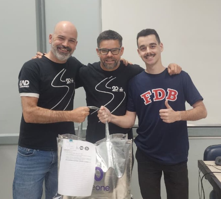 O evento também contou com um momento especial de integração: o sorteio de dois ingressos para o Dev Fest 2025, que acontecerá no próximo sábado, 06 de dezembro. Os estudantes premiados foram Eduardo Rossoni Paim e Marcus Vinicius Marques Sanches.