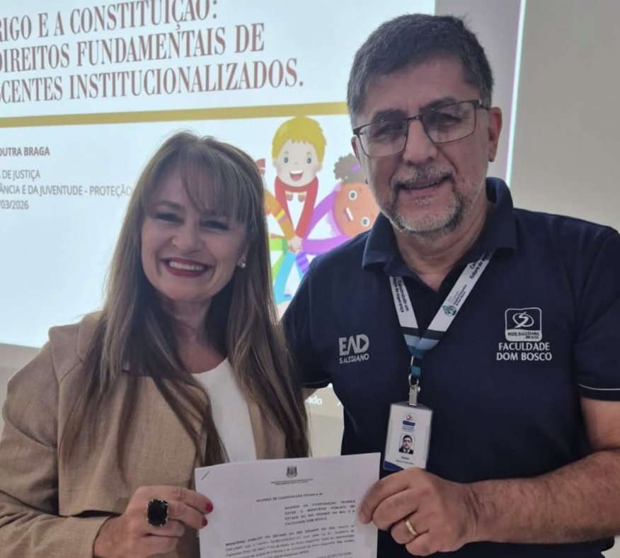Um dos pontos altos da noite foi a assinatura do termo de cooperação entre o Ministério Público e a Instituição para o trabalho com o acolhimento institucional de Porto Alegre. O documento, assinado pela Promotora e pelo Diretor Executivo da Faculdade, Edson Sidney de Avila Junior, compromete a Faculdade Dom Bosco pelos próximos 2 anos, a prover projetos e ações junto ao acolhimento institucional.