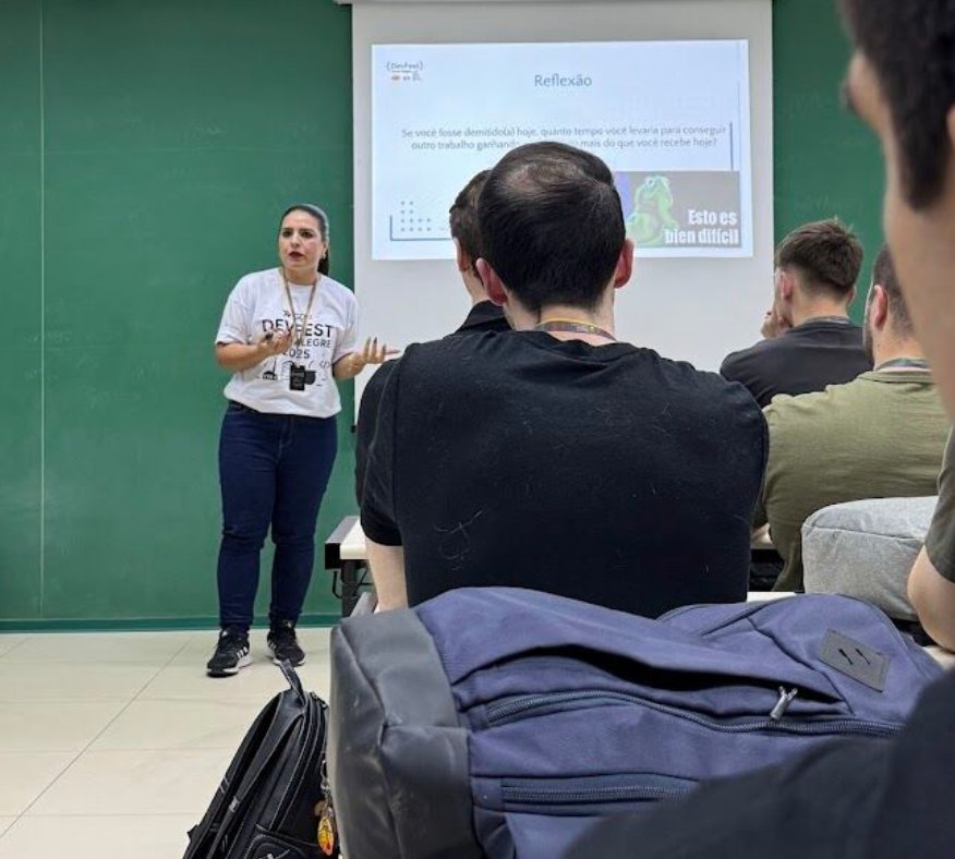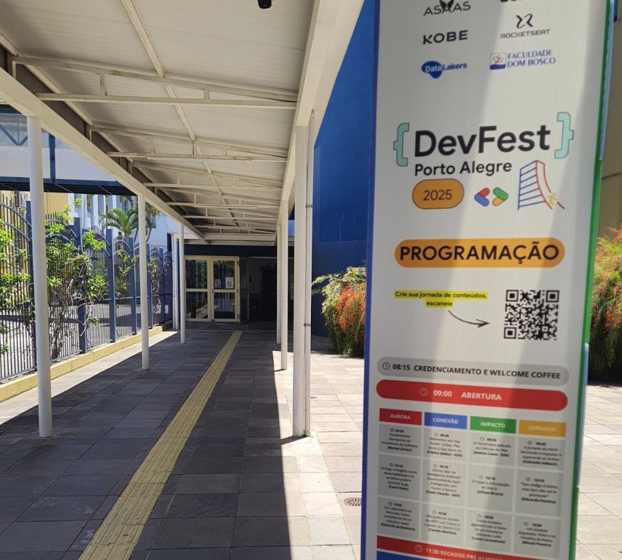 O DevFest é uma conferência anual realizada em diversas cidades ao redor do mundo e reconhecida por reunir desenvolvedores, designers, empreendedores e entusiastas interessados em produtos e tecnologias Google. A estreia em Porto Alegre trouxe uma programação robusta, com mais de 20 palestrantes distribuídos em diferentes trilhas e salas temáticas, oferecendo conteúdos que abordaram desde inteligência artificial e cloud computing até desenvolvimento web e mobile, carreira em TI e tendências do mercado.