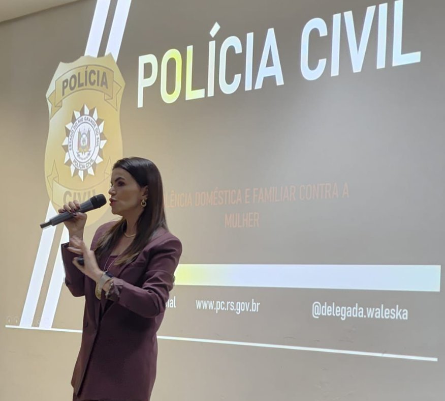 A segunda parte do evento, realizada no turno da noite, foi marcada pela palestra com o tema “Por todas: defesa da integridade e dignidade da mulher. Não a todas as violências” conduzida pela Dra. Valesca Alvarenga, delegada da Polícia Civil do Rio Grande do Sul e diretora da Divisão de Proteção de Atendimento à Mulher. Com vasta experiência na área, a delegada destacou que o feminicídio é o ápice de um ciclo de violência e ressaltou a importância das medidas protetivas. Além da repressão, a palestrante defendeu a educação e o trabalho com grupos reflexivos para homens como formas essenciais de prevenir crimes e desconstruir o machismo.